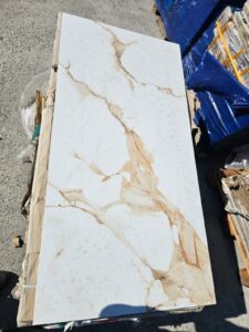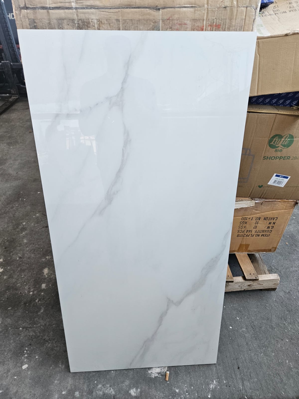 LASTRA GRESS PORCELLANATO , EFFETTO MARMO LUCIDO VENATURE MARRONI E GRIGIO, MISURE 60X120